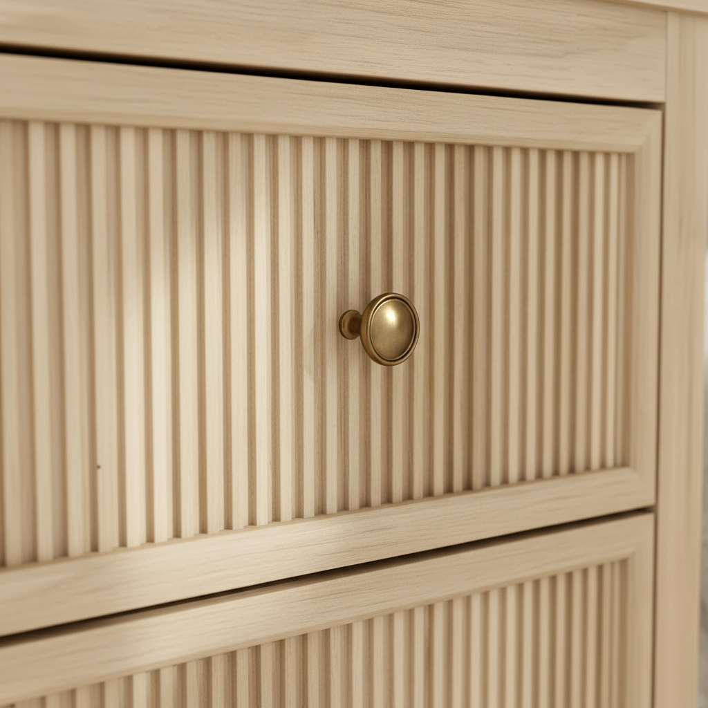- Elegant Textured Design: Vertical ribbed drawer panels with brass knobs add tactile charm and visual interest