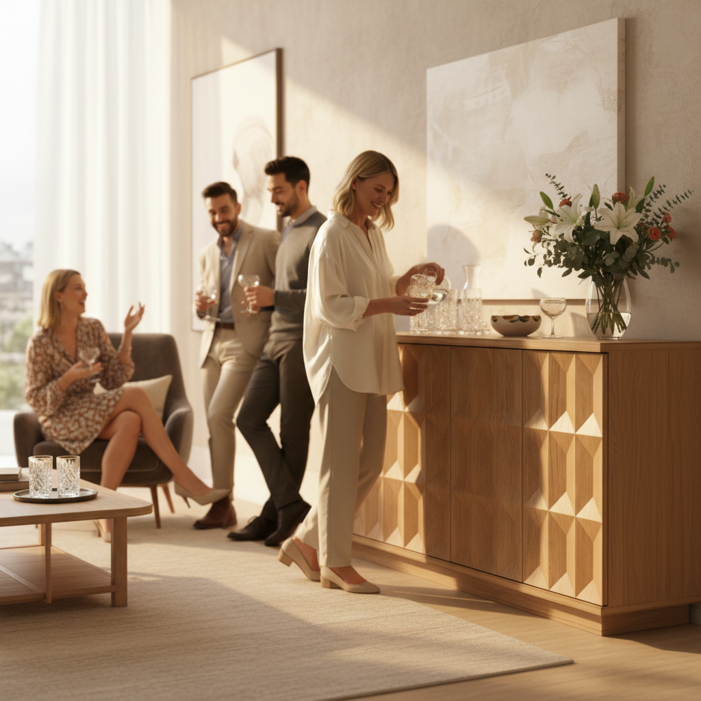 - Dual Functionality: Balances stylish statement design with practical storage solutions for living and dining areas