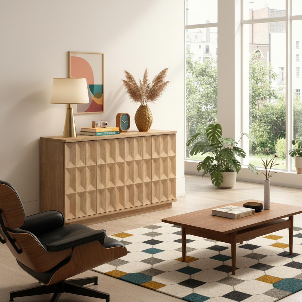 - Artistic Visual Appeal: Bold 3D geometric pattern detailing on four doors transforms basic storage into a decorative focal point