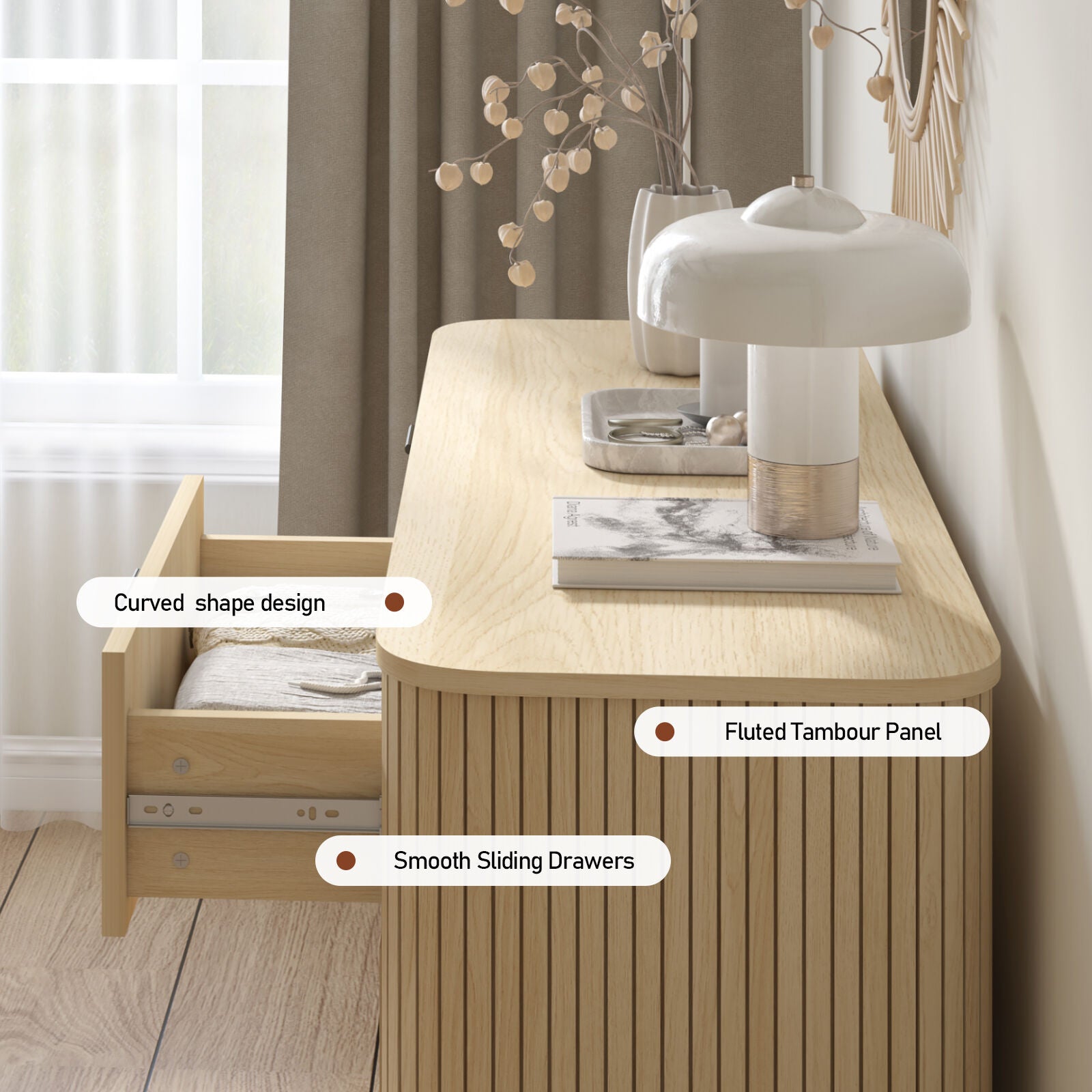 ✨ Fluted tambour panels on both sides for a textured, designer look