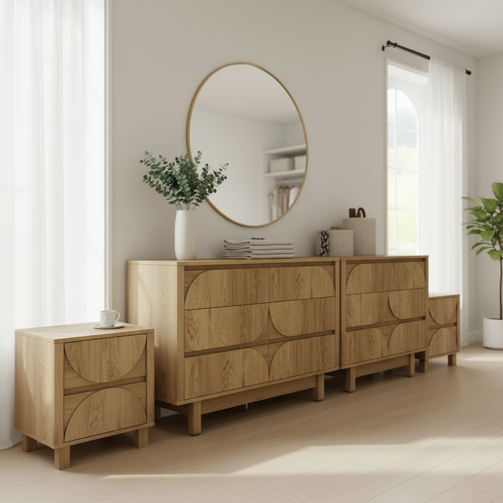Complete your bedroom with this premium Eden storage collection. This thoughtfully curated bundle pairs the spacious 12-drawer chest with matching bedside tables, creating a cohesive and organised bedroom sanctuary.