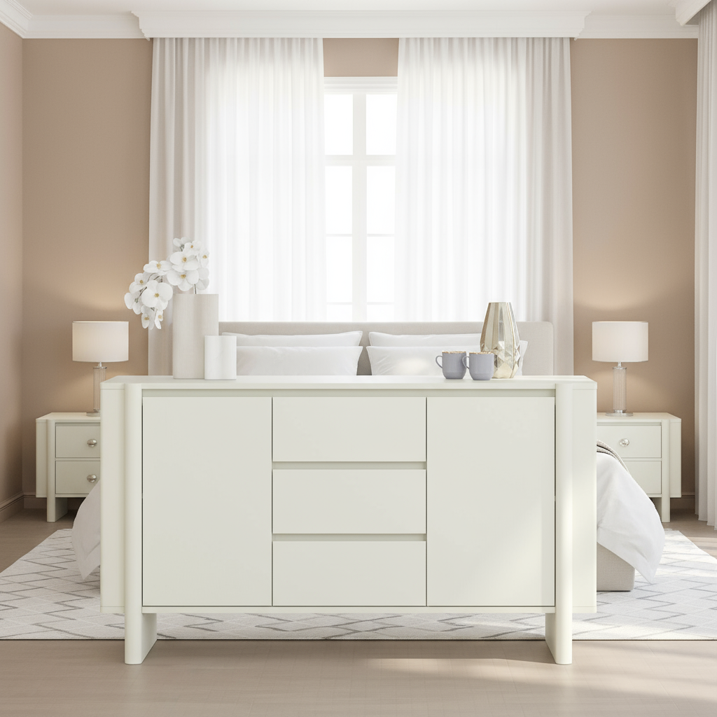 Behind its sleek doors, spacious internal shelves provide ample room for your dinnerware, glassware, or everyday essentials. The wide 150cm top surface is perfect for styling décor, plants, or statement lighting—making it both functional and visually appealing.